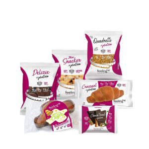 Snack tipo cracker, grissini, chips o schiacciatine ad alto contenuto proteico.