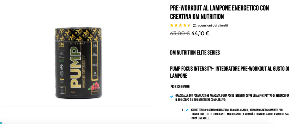 PUMP FOCUS INTENSITY – Pre-Workout al Lampone Energetico con Creatina di DM Nutrition