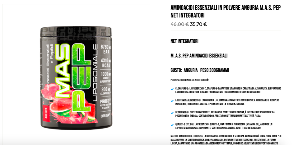 M.A.S. PEP – Aminoacidi Essenziali in Polvere al Gusto Anguria di Net Integratori