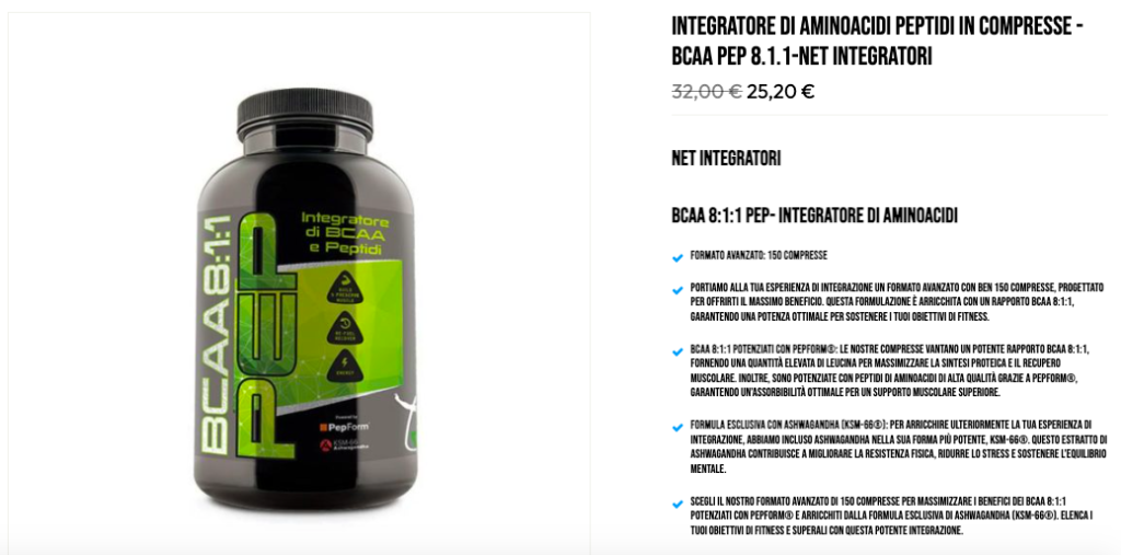 BCAA PEP 8:1:1 – Integratore di Aminoacidi in Compresse di Net Integratori