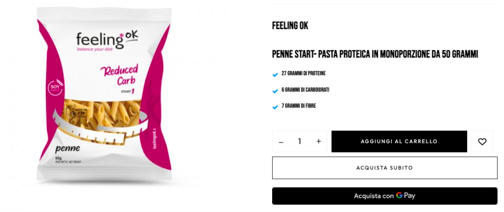 - 160 g di penne proteiche (acquistabili sul nostro shop)